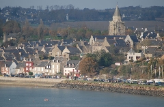 Cette église commencée dans un style sévère évolue vers la joliesse des détails. Sa flèche de pierre s'écroula au XVIe s. sous les boulets des ligueurs. Son enclos d'une finesse exeptionnelle est l'un des plus anciens de Bretagne.