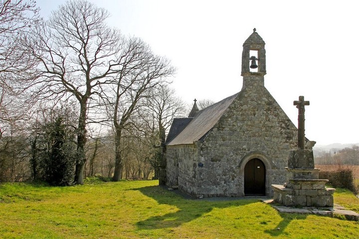 Construite par les seigneurs de Guernaham, elle possède un chevet à 3 pans (1688). Le meuble en bois qui sert d'autel, portent des panneaux remontant au XVème siècle. Le calvaire situé juste devant possède une table d'offrande. Son emplacement offre un magnifique panorama sur la vallée du Léguer.