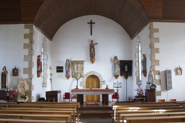 De la chapelle d'origine, seule subsiste la porte occidentale sculptée qui daterait du XVe siècle. Une riche statuaire dont plusieurs statues en bois polychrome du XVIe au XVIIIe siècle orne la chapelle. Ces statues représentent saint Goal, saint Jean l'Evangéliste, une Vierge à l'Enfant, saint Armel et sainte Apolline. La chapelle est ouverte à la visite les jeudis, de 14h30 à 18h, du 9 juillet au 4 septembre 2014, dans le cadre de Détour d'Art.