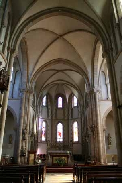 L'ancienne, vétuste et délabrée fut démolie en 1913. L'église actuelle en granit de Languédias, dont la première pierre fut bénite le 4 juillet 1897, fut terminée le 3 décembre 1899 mais consacrée seulement le 21 août 1932. Le vitrail du transept nord montre le Duc d'Aiguillon s'entretenant avec le marquis de Broc, près du Moulin d'Anne, sous la protection de la Vierge, assise sur un char nuageux qu'escortent les anges. A ne pas manquer à l'intérieur : le bénitier de l'ancienne église (XIV è s.), l'orgue datant de 1850, restauré en 1999.