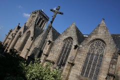 Le choeur, le clocher et les porches (notamment le magnifique porche nord), sont reconstruits au début du XVème siècle par le mécénat du Duc Jean V, c'est un bel exemple du style gothique flamboyant, qui a rencontré beaucoup de succès en Bretagne.