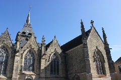 Elle reste l'église la plus significative du choc des idées au 16è s., avec un portail Renaissance des plus païens inachevé. La génération suivante y plaça des vantaux de porte très marqués par la rigueur calviniste. Le porche est appelé porche aux malades car il était destiné à accueillir les lépreux sans faire fuir les fidèles. Elle est ornée par ailleurs de belles verrières du 19è s. et d'un retable lavallois du 17è s. d'une taille monumentale. A l'extérieur, de multiples gargouilles pittoresques ornent les clochetons.