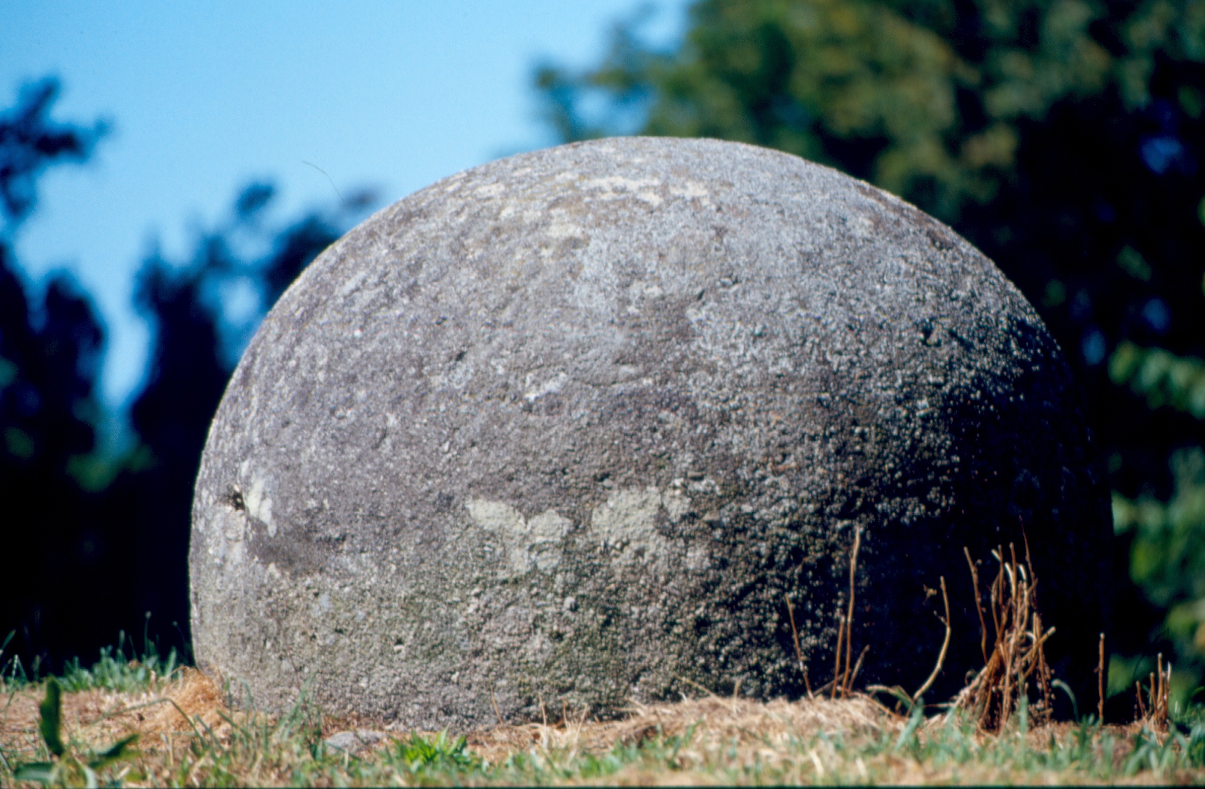 Il s'agit d'une stèle gauloise qui date de 500-400 avant J.C. D'environ 2 m de large et 1,50m de haut, cette grosse pierre sphérique appartient à un culte païen. Elle aurait été lancée du sommet du Méné-bré par Saint-Michel qui souhaitait chasser voire même tuer le diable qui plastronnait dans le village. Pour s'y rendre, du bourg de Louargat, prendre la direction Saint-Eloi sur 3km environ.
