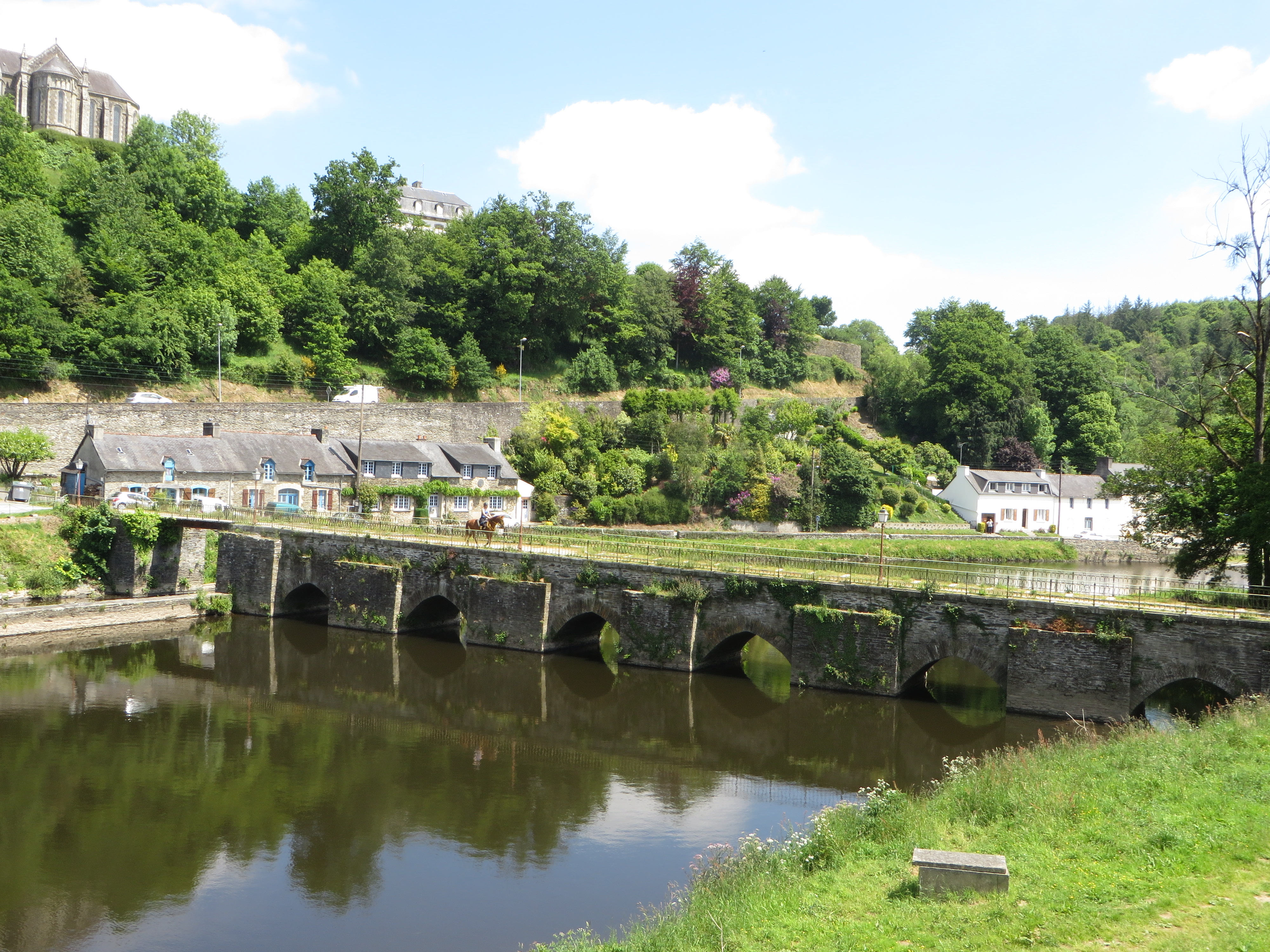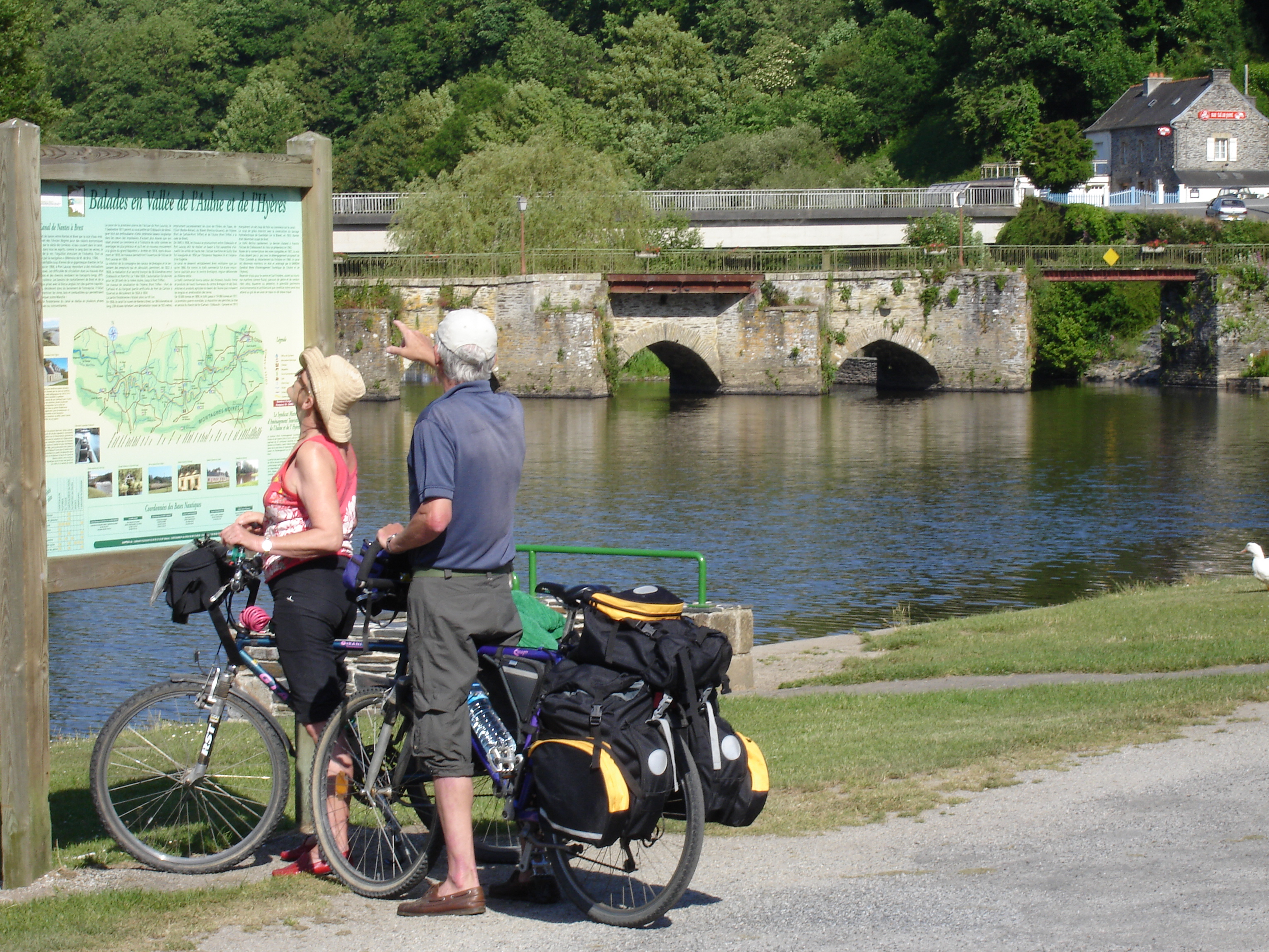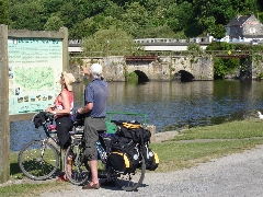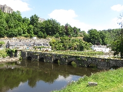 construit sous Louis XIII, au 17ème pour remplacer un gué utilisé dès l'Antiquité. Rebaptisé un temps pont national pendant la Révolution française. Lorsque l'Aulne fut canalisée, ce pont aux arches trop basses constituait un obstacle pour le trafic du canal, il fut donc amputé de l'une d'entre elles afin de rendre plus aisé le passage des péniches.