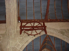 Cette roue daterait de la fondation de l'église, soit du XVIe siècle. Le cercle de bois est relié au moyeu par huit rayons. Un axe en fer traverse ce moyeu et se termine en manivelle. La roue est garnie de douze clochettes de dimensions et de son différents. Selon la tradition, cette roue serait un gage de reconnaissance à Notre-Dame pour avoir rendu la vie à un enfant, probablement celui des donateurs. La roue est actionnée pour obtenir l'intercession de Notre-Dame de Confort en faveur des enfants muets ou ayant des difficultés à parler, qui sont alors placés sous la roue.