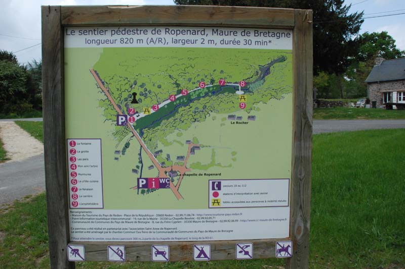 Au pied de la statue de Sainte-Anne s'ouvre l'un des plus beaux vallons du Pays de Redon. Aux confins nord ouest du vaste territoire de Maure-de-Bretagne, le village de Ropenard accueille depuis 843 le plus ancien pèlerinage que les Bretons dédient à Sainte-Anne, la grand mère du Christ. La communauté de communes du Pays de Maure-de-Bretagne a aménagé sur ce site le sentier de Ropenard pour le rendre accessible aux personnes à mobilité réduite. Une attention toute particulière a été apportée sur le choix du revêtement, le traitement des pentes, la signalétique et les bornes d'interprétation.